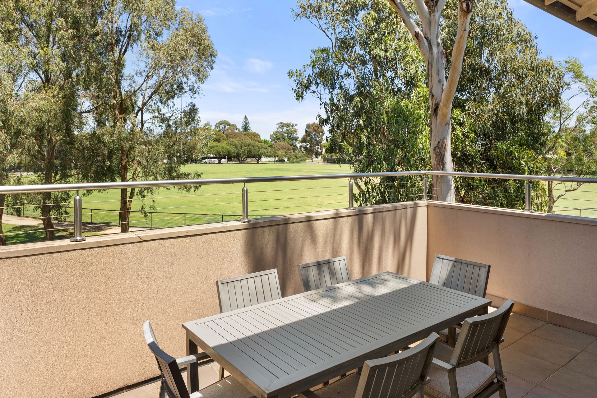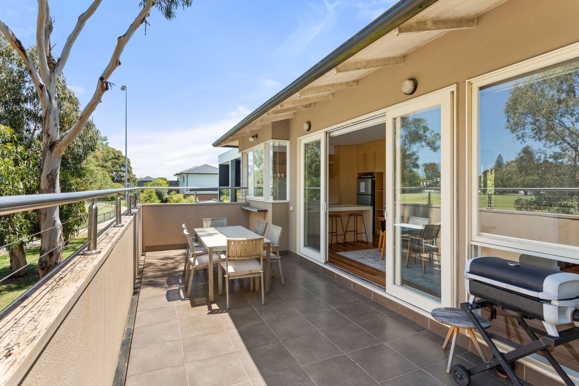 The property layout is as follows: An inviting ground-level gated entry leads past two bedrooms, one with courtyard access and a central bathroom, separate laundry with washing machine facilities, and a double remote garage. The first floor comprises a large private study, a gourmet kitchen with an adjoining dining area for 6, and a spacious living area that comfortably seats 6. Wrap around balcony with BBQ, outdoor seating for 6, and wonderful views over Gumtrees and parkland. Central bathroom and main bedroom complete upstairs. Central heating/cooling upstairs and central heating ONLY (no cooling) downstairs.