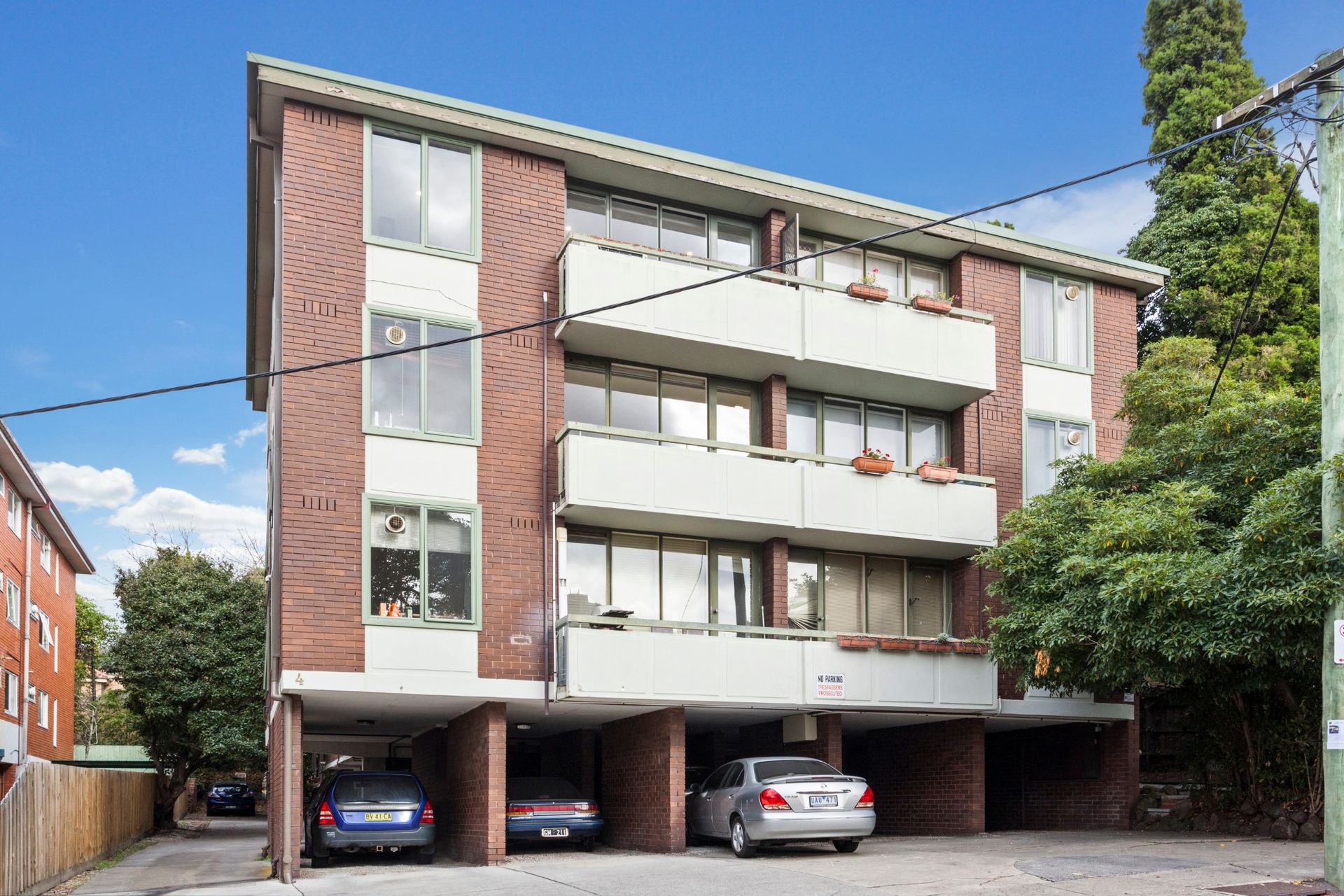 Off-street parking is provided for one small car in the carport beneath the apartment block. The carport is only suitable for a little car or small hatchback. There are 2 small gaps either side of the brick walls of the carpark allowing the front passenger and driver to open their doors. Rear passengers should enter and exit outside of the carpark. Note there are no parking permits available.