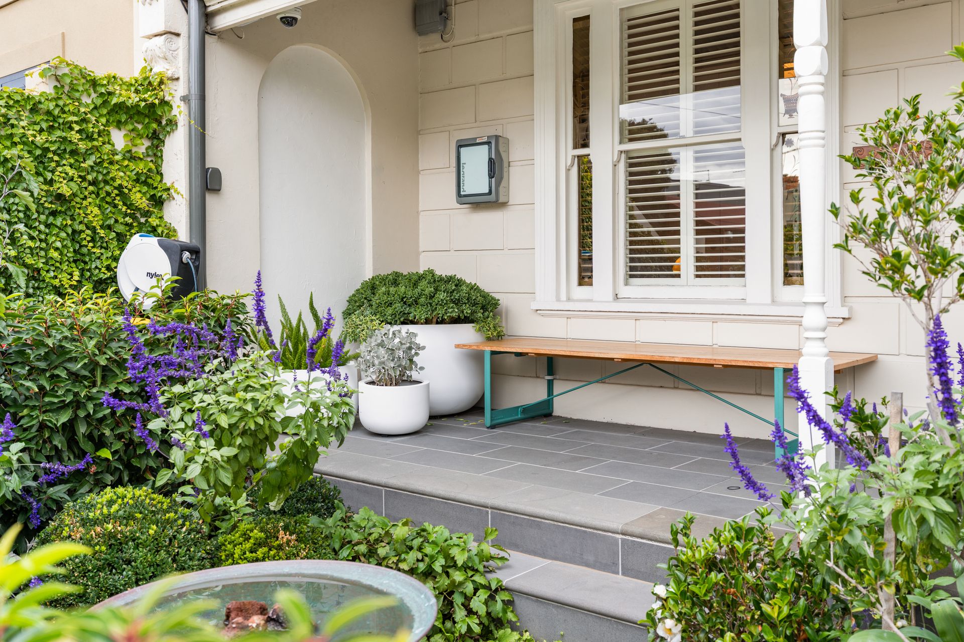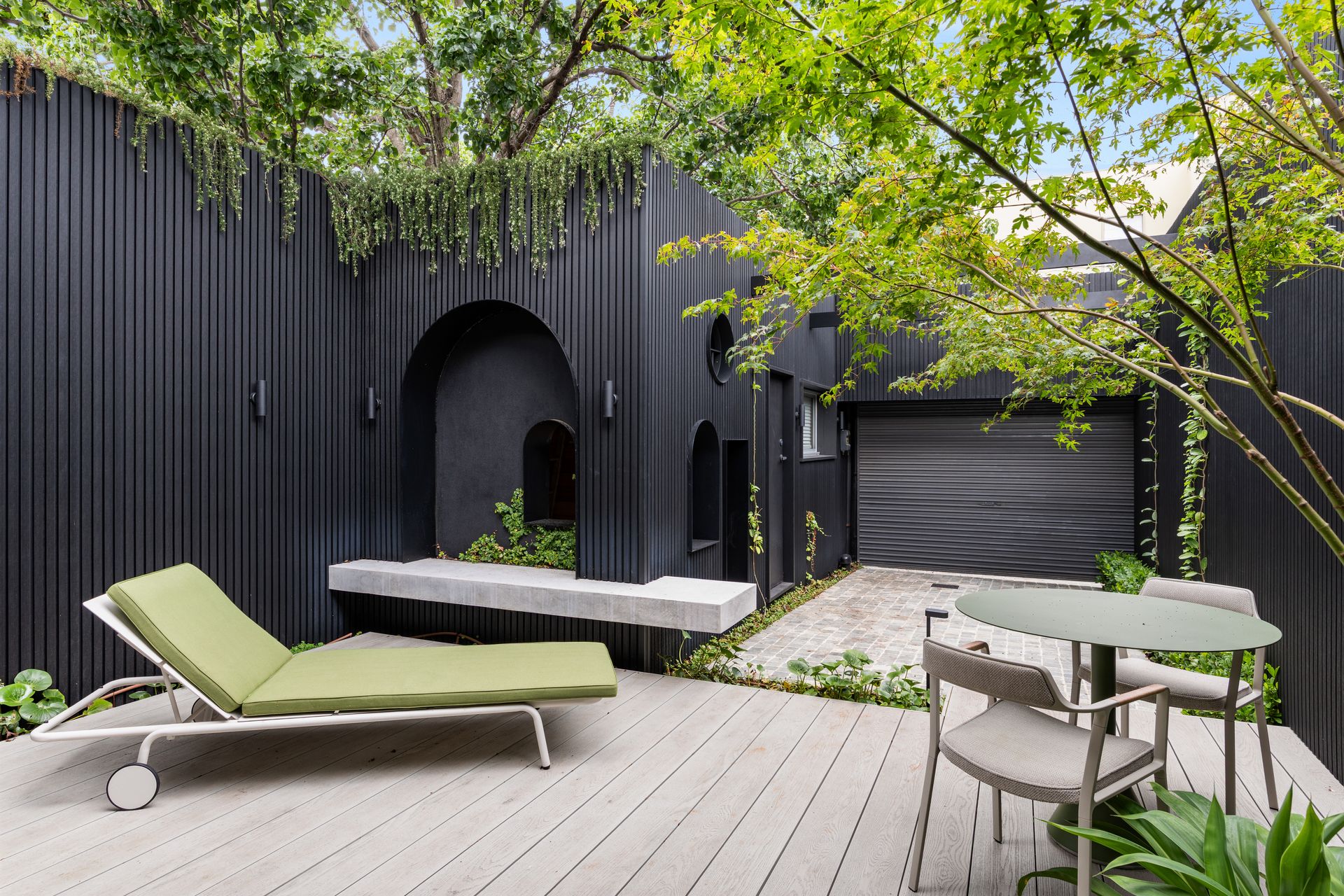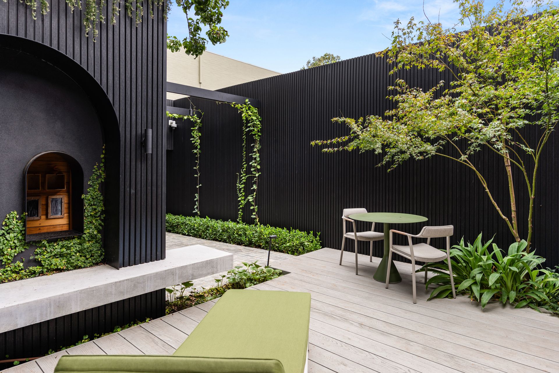 Private landscaped courtyard with outdoor dining