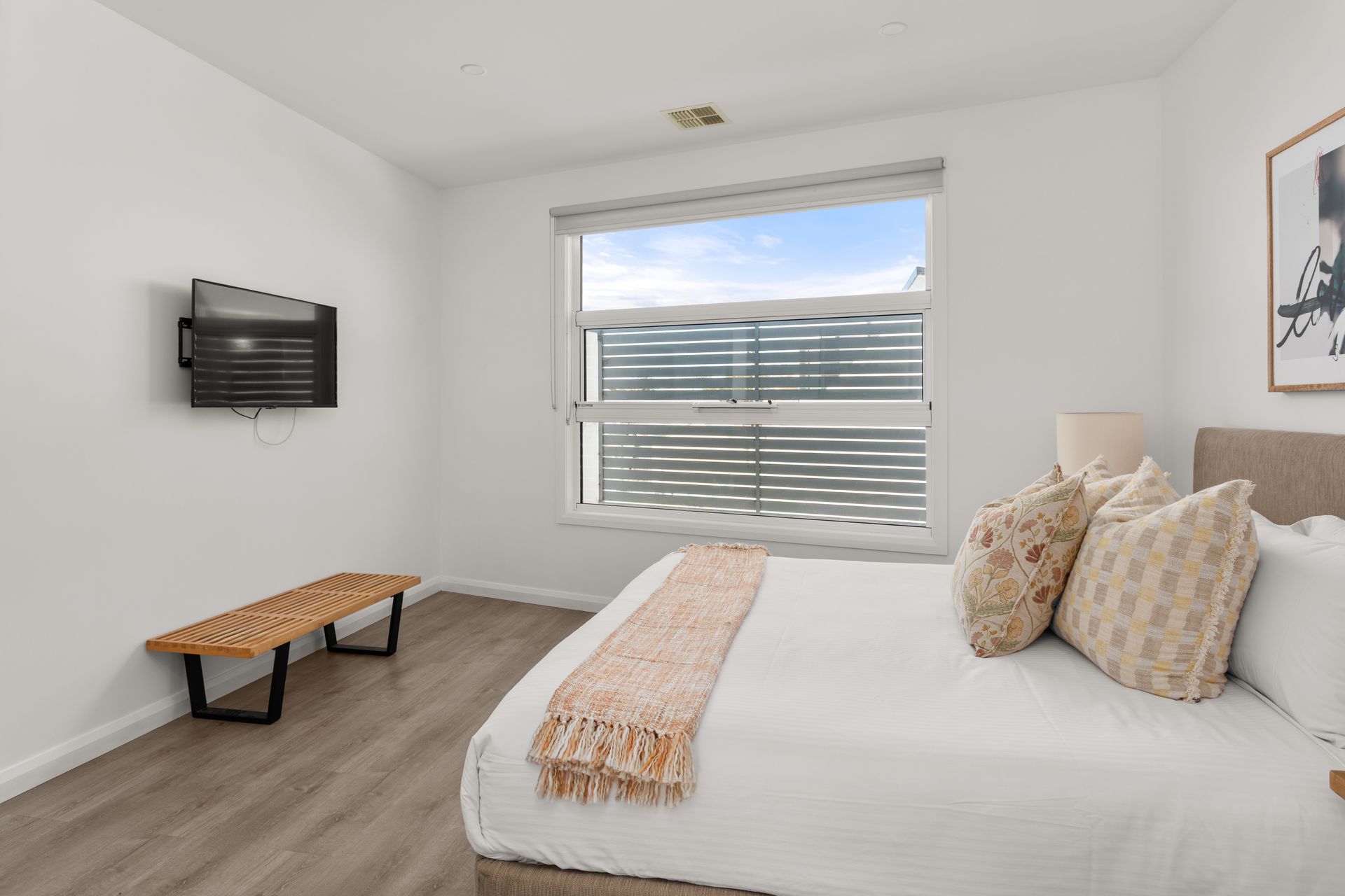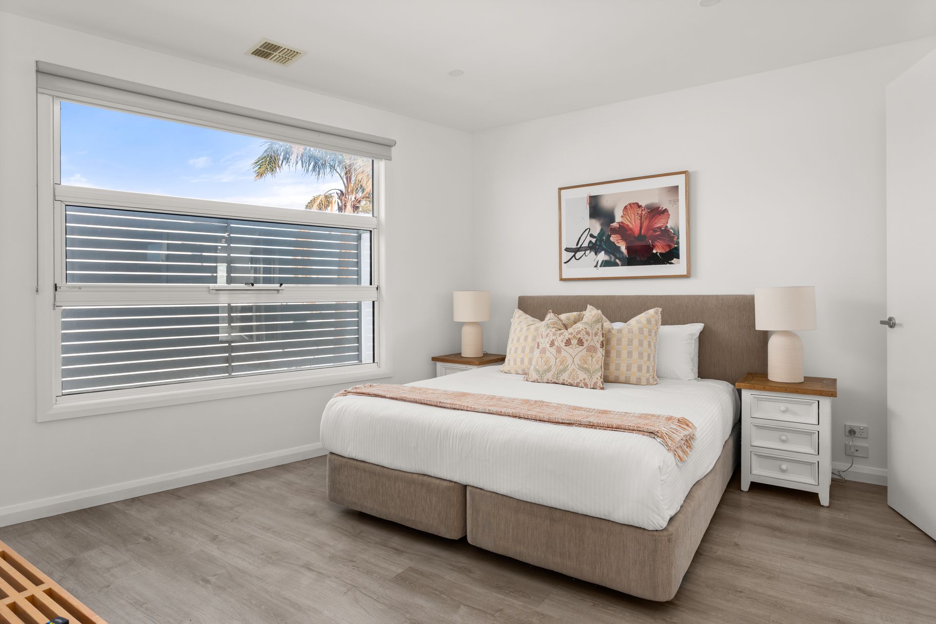 Bedroom 3 (downstairs): Queen-size bed, built-in robes