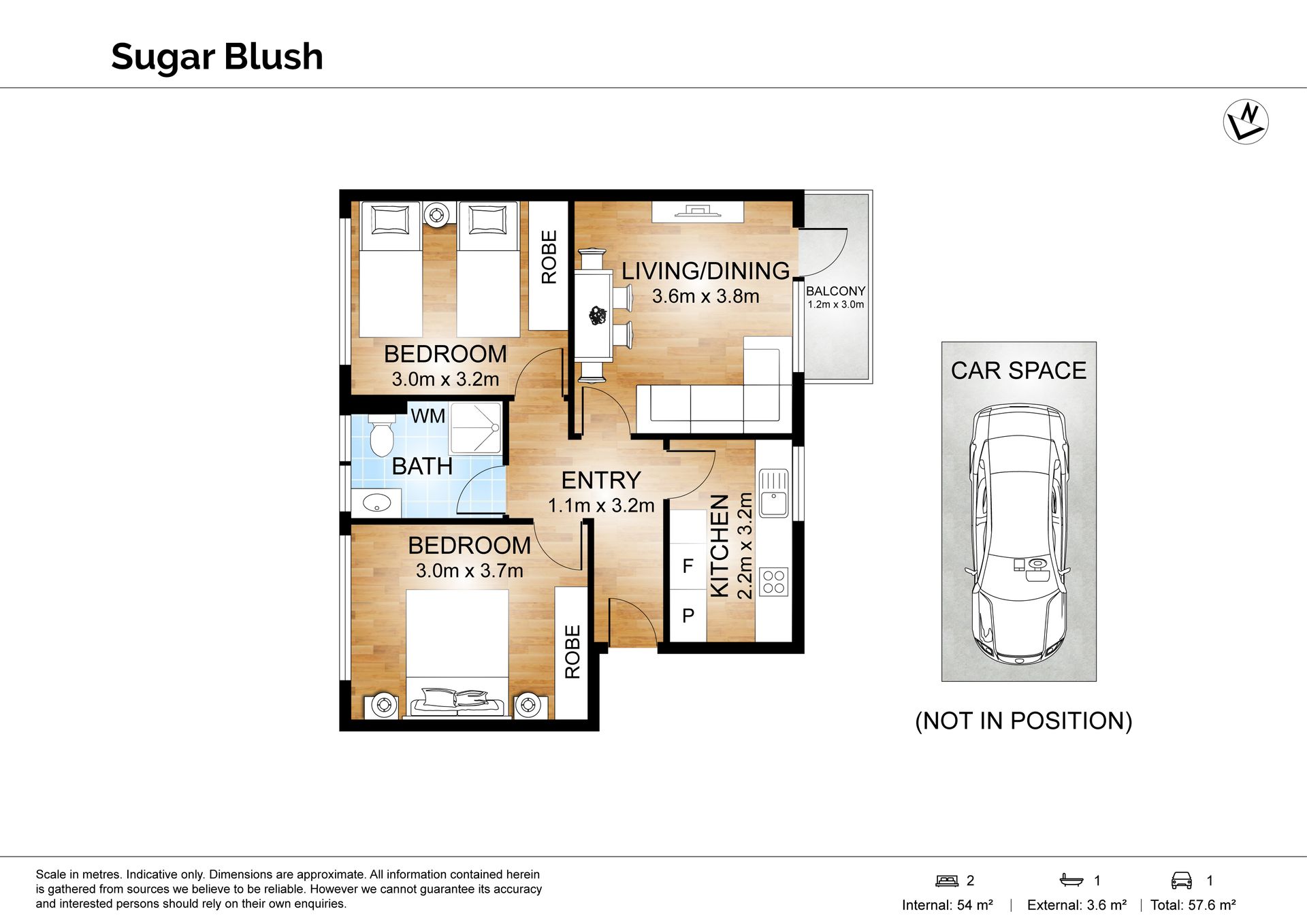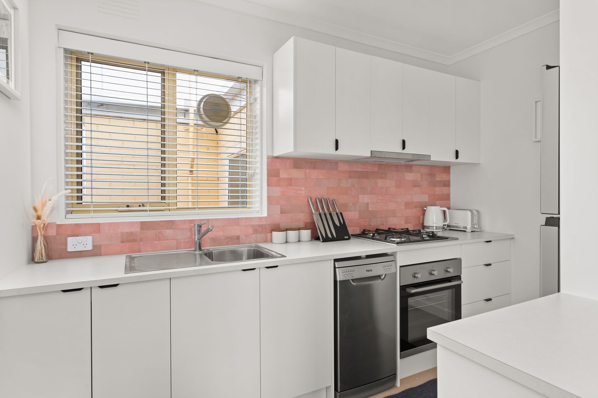 Nestle in cosy comfort in Sugar Blush’s bright living and dining area while watching TV, or step out onto the balcony for some fresh air. Its modern kitchen, with pink-tiled splashback, is equipped with a gas stovetop, oven and dishwasher. The home’s bedrooms and central bathroom offer comfort and relaxation for the whole family.