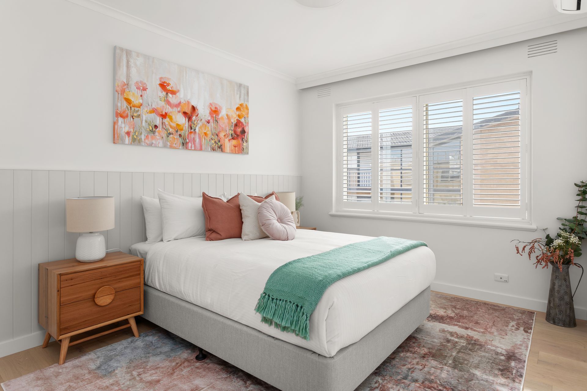 Bedroom 1: Queen bed, split system air conditioning, built-in wardrobe